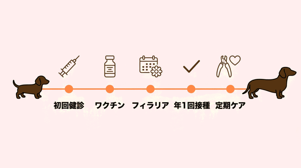 犬を迎えたら、いつ動物病院に行けばいいのか。ここでは、お迎えから1年間の通院スケジュールの目安を紹介します。