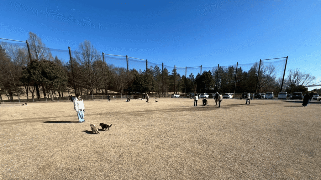 私たちは小型犬エリアの利用でしたが、フェンス越しに見た大型犬 エリアは本当に広々としていて、ゴールデンレトリバーやボーダーコリー が全力で走り回っていました。