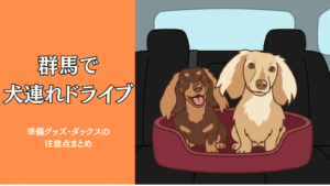 愛犬と車で出かける準備については「群馬で犬連れドライブ|準備グッズ・ダックスの注意点まとめ」で、実際に使っているドライブシートやベッドも紹介しています。