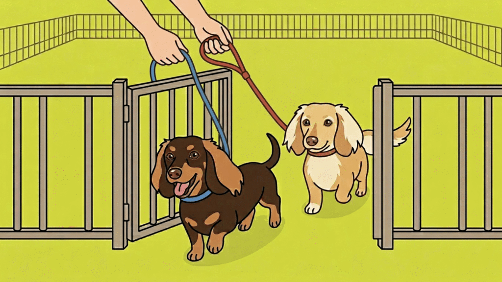 - リードの装着に慣れている — ドッグランの出入りは必ずリード着用。嫌がる子は事前に慣らしておく